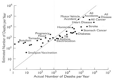 | Perceived versus actual fatalities. Adapted from Lichtenstein et al. (1978). |